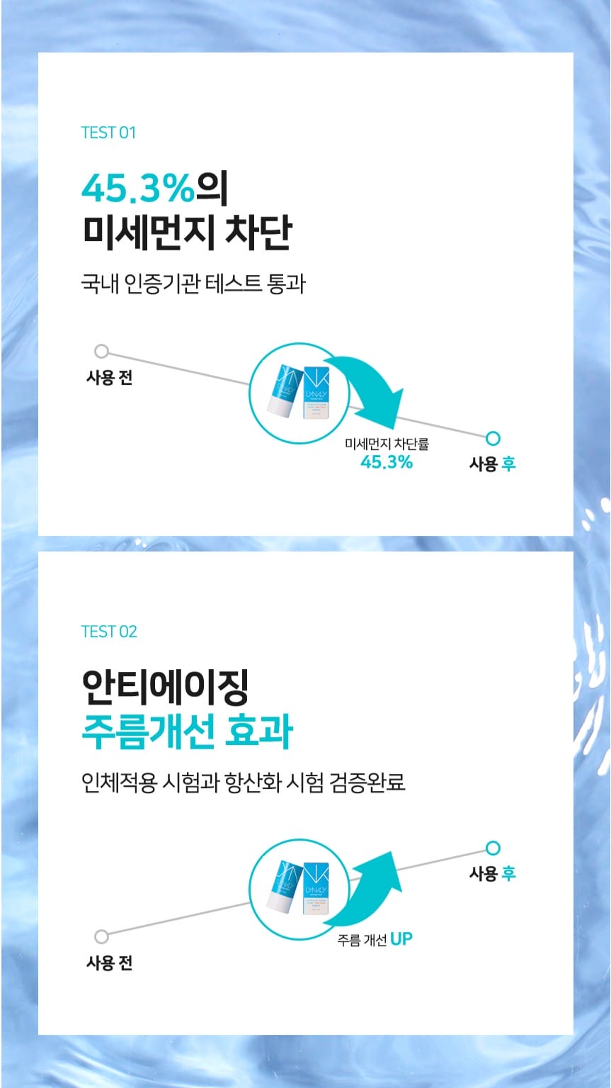 • TEST 01: Giảm 45.3% bụi mịn bám da (PM2.5).