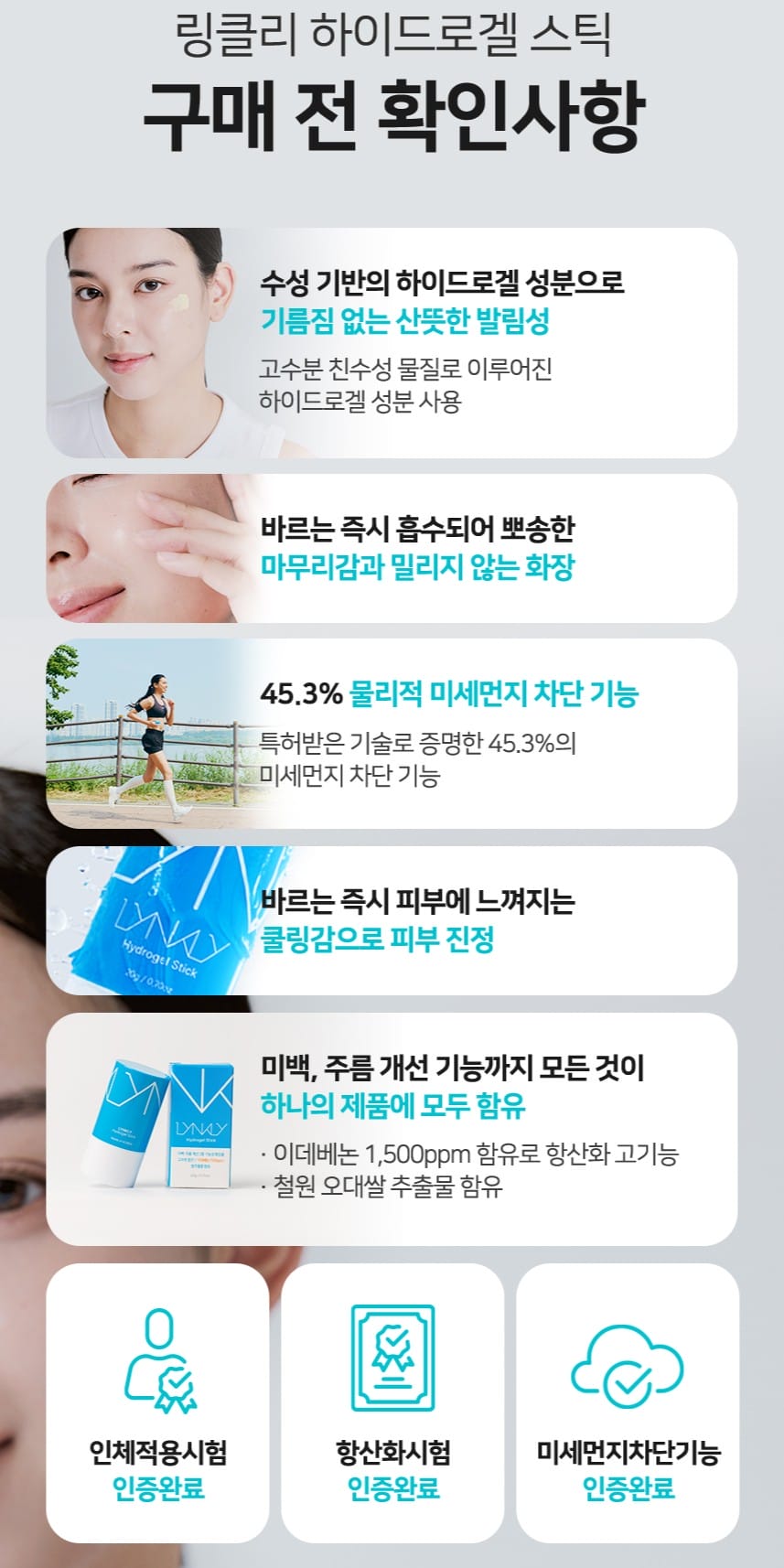1 stick = 3 bảo vệ: Chống ô nhiễm – Cấp ẩm tức thì – Ngừa lão hóa, với công nghệ Hydrogel làm mát thông minh chỉ sau 5 giây thoa.