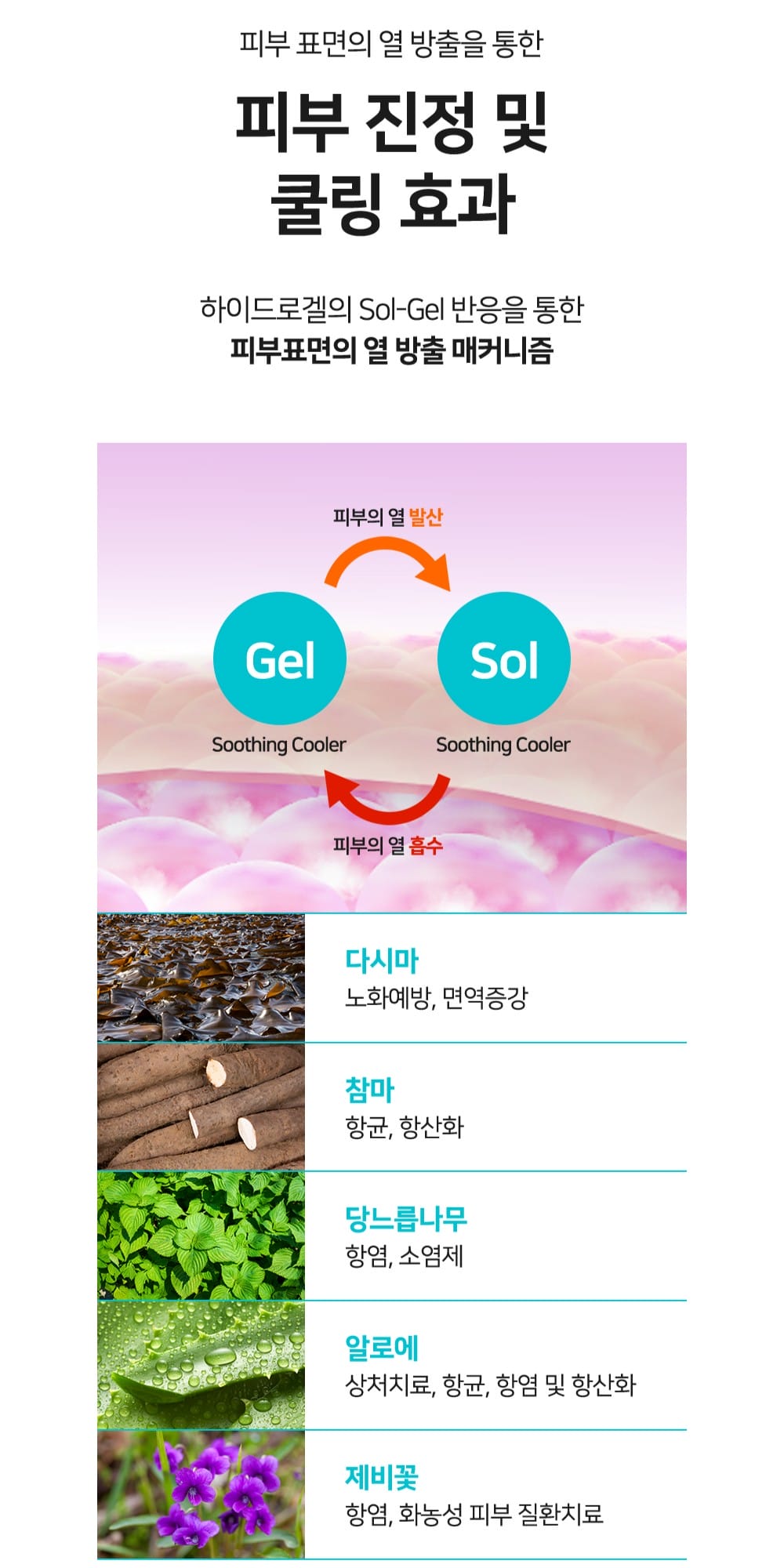 • Làm mát tức thì: Kết cấu Hydrogel chuyển pha Sol → Gel khi tiếp xúc da, hấp thụ nhiệt và giải phóng hơi nước, giúp làm dịu ngay lập tức.